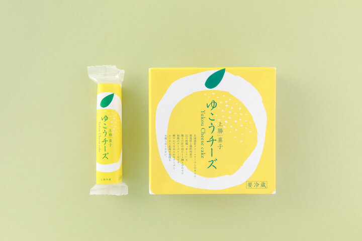 葉っぱビジネスやゼロ・ウェイストの取り組みなど、山間部の小さな町でありながら全国から注目を集める徳島県上勝町。実はゆこうの生産量の全国シェア8割を占める一大生産地でもあります。ゆこうとは、漢字で書くと「柚香」。柚子とだいだいが自然交雑してできた品種で、穏やかな香りとまろやかな酸味が特徴です。主張しすぎない味が好まれ、ポン酢や料理の隠し味に使われることが多いのですが、柚子やすだちに比べると知名度は低いことが否めません。そこで、ゆこうをもっと知ってもらいたいと開発されたのが「ゆこうチーズ」です。ゆこうの果皮を思わせる黄色のパッケージは、思わず手に取りたくなるセンスの良さがあります。