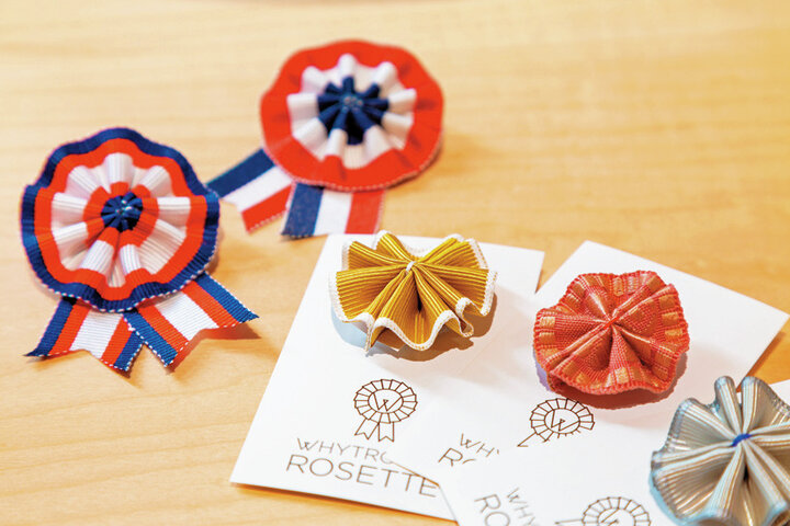 シンプルな装いや帽子のアクセントになるブローチも扱う