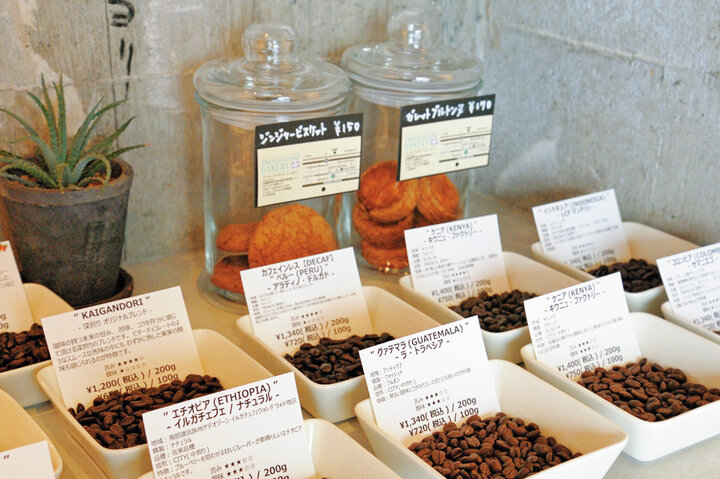 深煎り・中煎り・浅煎りのオリジナルブレンドとシングルオリジンの10種以上のコーヒー豆が並びます。厳選された生豆を自家焙煎し、珈琲豆本来の香味を引き出した一杯が味わえます。