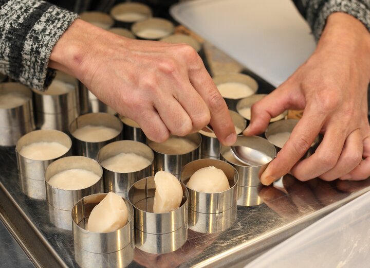 セルクルを使ってひとつひとつ餡を重ねていく