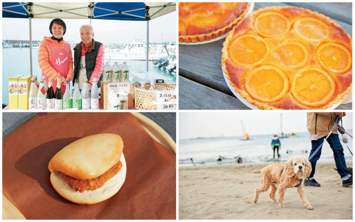 旅のはじまりは、葉山港で毎週日曜日に開催される「ハヤマ・マーケット日曜朝市」。新鮮な魚介や野菜、近隣のショップやレストランの惣菜やスイーツなど、バラエティ豊かな葉山の味を求めて大勢の人が集まります。 気軽に名店の味を楽しむことができる朝市限定の商品も充実。人気の品はあっという間 に売り切れてしまうので、この日ばかりは朝寝坊をガマンして。 葉山グルメをあれこれ買い込んだら、海岸へ移動して、浜辺でのブランチにしましょう。
