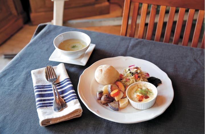 日替わりデ リ3品を盛り合わせた「季節の 地野菜たっぷりのデリプレー ト」1200円