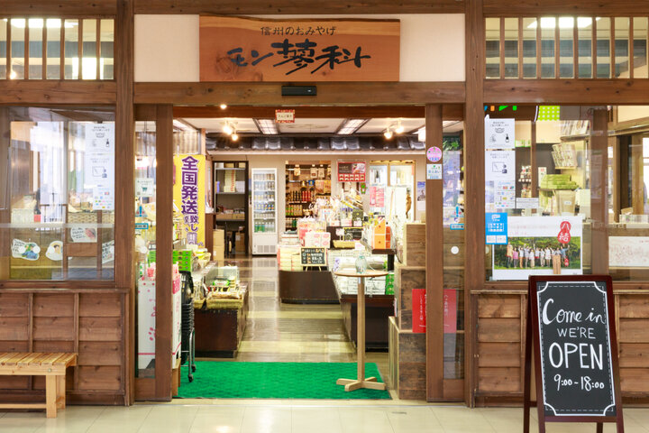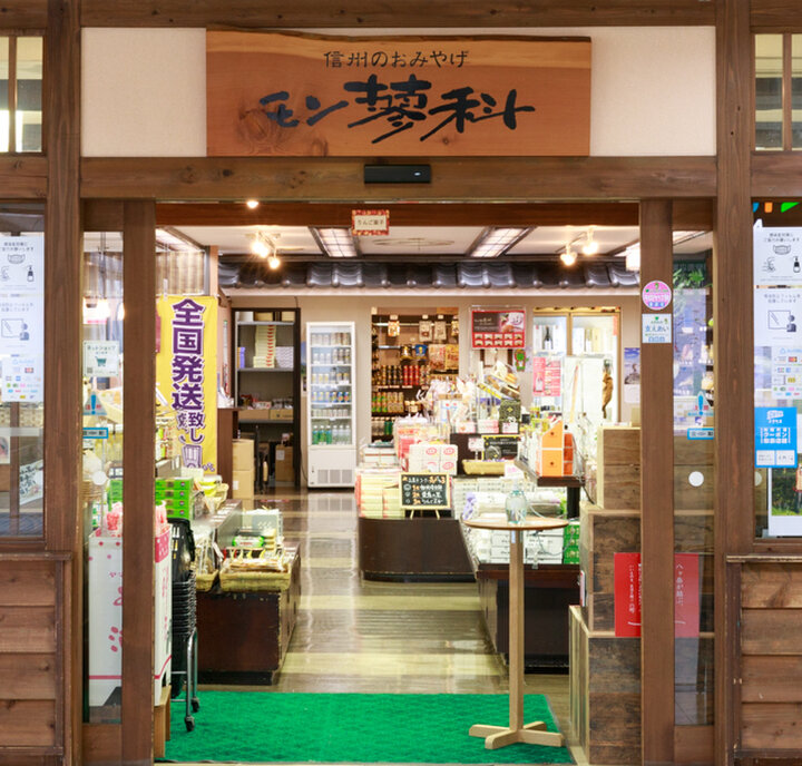 この土地ならではのおみやげを探したいなら、信州銘菓やそば、漬物や寒天など、茅野を中心とした信州の特産品が約800種類も揃う「モン蓼科」へ行きましょう。JR茅野駅改札の目の前にあるので、帰りに立ち寄って買い物をするのにもとても便利なロケーションです。