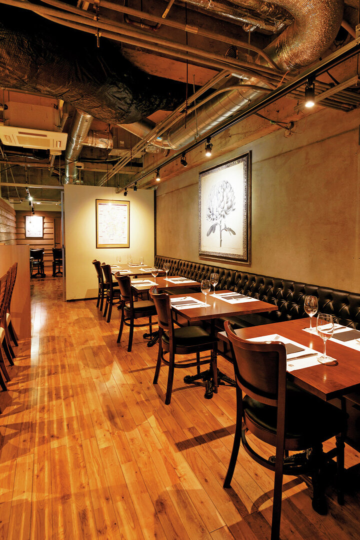 ボリューム満点の塊肉を、それぞれの肉に合わせた焼き方で調理し、シェアして味わうのがこの店のスタイル。ジューシーな肉には自然派ワインを合わせていただくのがおすすめです。お得なランチメニューも人気があります。