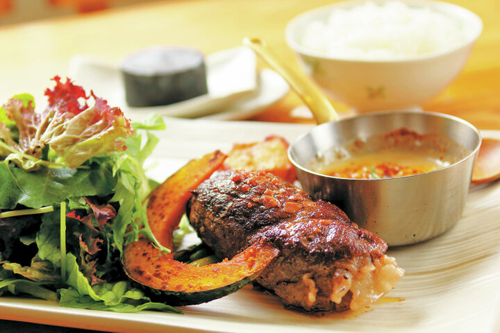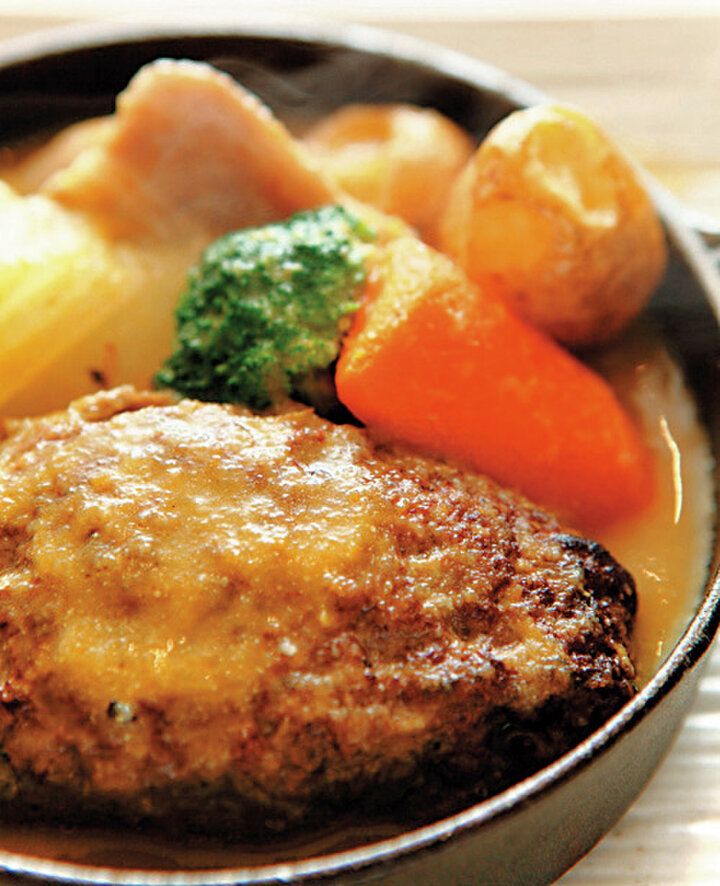 牛、豚、鹿などの北海道産肉を使った手作りハンバーグの専門店。肉は5種類、ソースはチーズやデミグラスなど8種類から選ぶことができ、組み合わせを楽しめるのが魅力です。自社ソムリエのセレクトワインと一緒に味わって。