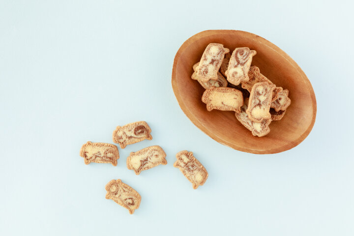 世界の名だたるシェフたちも認めた牛乳をふんだんに使ったミルククッキー。食べるとさっくりとほどよい食感に、ミルクにほんのりココアパウダーが効いたやさしい味わい。卵を一切使用しないため、アレルギーも気にせず安心して食べられます。 かわいらしい牛型クッキーのなかには、阿蘇を代表するあか牛をイメージした茶色の牛も入っています。 牧場自慢の牛乳とも相性抜群。阿蘇の自然の恵みを感じるおやつタイムを楽しんでみてはいかがでしょうか。