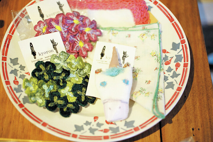 横振りミシンで作られるkyoronの刺繍ブローチ