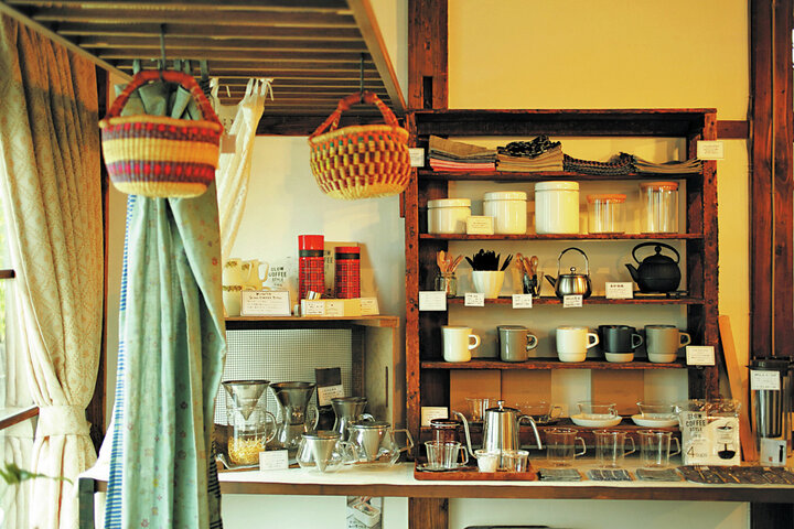静かな住宅街の中にたたずむ古民家を生かした雑貨店。全国からセレクトした雑貨や服、キッチン用品、観葉植物など、暮らしを豊かにしてくれそうなアイテムがところ狭しと並びます。古い建物に流れるゆったりとした雰囲気のなか、お気に入りを探してみて。