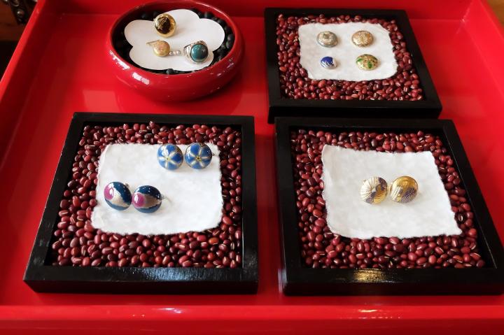 薩摩ボタンへの想いを伺ってみたところ、「かつて絵付けをしていたお茶道具や壺と違うのは、ボタンは加工次第では身につけられるアイテム。旅行に来た方はもちろん、地元の方も伝統工芸のアクセサリーを身につけて、鹿児島にはこういうのがあるのよ。と楽しみながら使ってもらえたら嬉しいですね」とのこと。