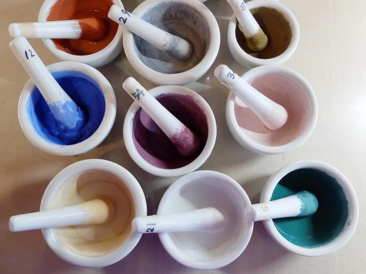 きらびやかな色彩は5 回の窯入れによって完成します。焼成と着彩を繰り返し、最後は金色の部分が輝くまで丁寧に磨きあげます。 本当に手が込んでいるんですね。