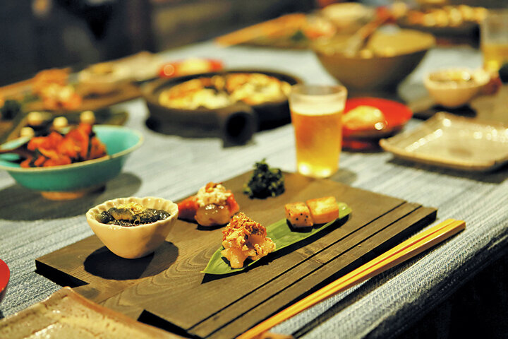 阿部家の食卓には、旬の野菜やのどぐろや島根和牛、隠岐の島産の岩がきなどを使った家庭料理が並びます。なかでも土鍋で炊いた米で作るおむすびのおいしさは格別と評判です。