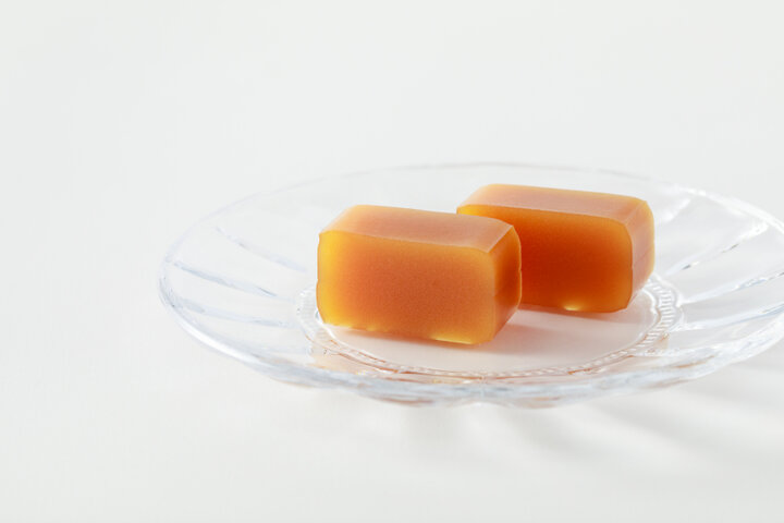 透明感のあるみかん色が新鮮な老舗和菓子屋の羊羹