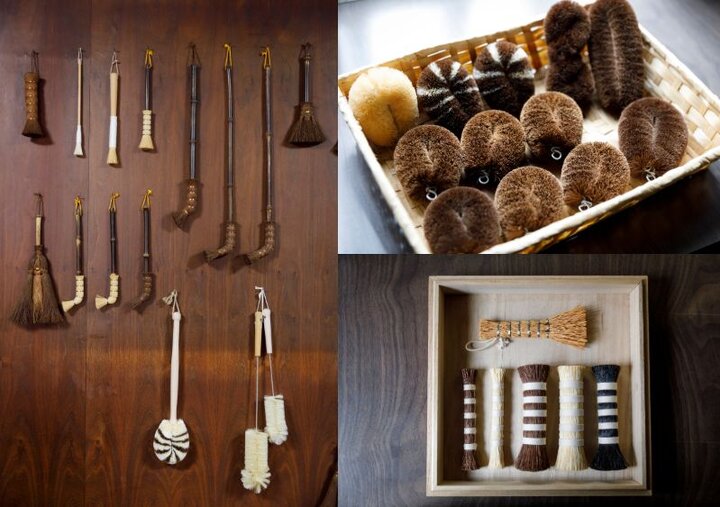 看板商品は、上質な棕櫚(しゅろ)で作るたわし。丹念に素材を選別し、手仕事で作るたわしはふっくらとやさしい手触りです。小は根菜洗いに、中はフライパンや鍋洗いにおすすめ。洗い心地と耐久性を兼ね備えたブラシも人気で、水筒の底や側面をくまなく洗えるパキン筆ブラシやペット用のブラシなど、さまざまな用途に応じた道具が揃います。