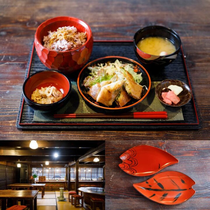 黒江の代表的な町並みの一角にあり、塗師(ぬし)町家を改装したカフェ兼体験施設。地元の食材を使ったランチやスイーツを漆器で味わえます。人気のメニューはスタッフの気まま定食や、香り高いぶどう山椒を使った黒江カレー。米の旨みを引き出した地酒「黒牛」を漆器で味わうこともできます。根来研ぎ出し体験やオリジナルかごバッグ作りなど体験ワークショップも豊富で、店内では漆器や地元食材の販売も行われています。