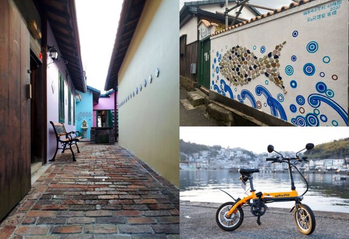 雑賀崎漁港は古くから栄えた漁師町。雑賀崎漁港から眺めると、急峻な斜面にカラフルな家々がびっしりと立ち並んでいます。まるで迷路のような雑賀崎の入り組んだ路地は、すべて漁港へとつながる道。散策してみるとすてきなカフェが点在し、フォトジェニックな風景と出会えます。小さくてコンパクトな電動バイク「glafitバイク」をレンタルして巡れば、きつい坂道も楽々です。
