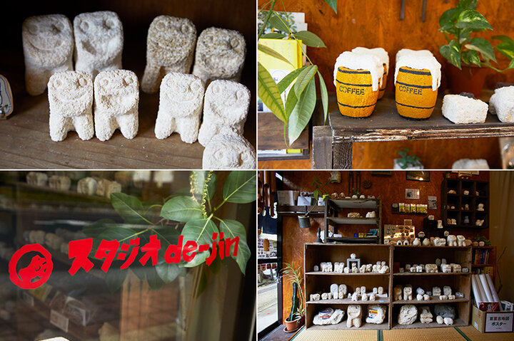 沖縄の人気店の軒先にたびたび飾られているのが、スタジオde-jinの琉球石灰岩を使った手彫りのシーサーです。ころんとした丸くて愛らしいシーサーたちを生み出しているのは、作家の若山大地さん。沖縄県立芸術大学で彫刻を学んだあと同じ大学出身の友人に石獅子の存在を教えてもらい、石獅子の歴史を辿りながら制作を始めたのだとか。