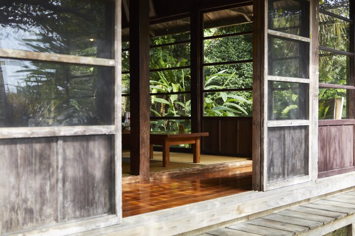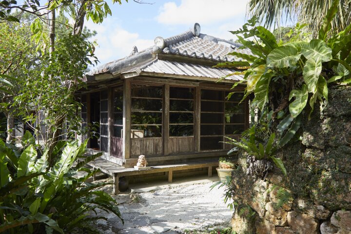 樹齢100年以上の木々と古い石垣に囲まれた「しむじょう」は、登録有形文化財に指定された築150年余りの琉球古民家。沖縄の人々の古来の生活を今に伝える建物として重要な役割を担っています。小高い丘の上にある家には爽やかな風が通り抜けていき、畳の上でくつろぎながら庭を眺めていると、遠い昔の風景を見ているような、不思議な感覚に襲われます。