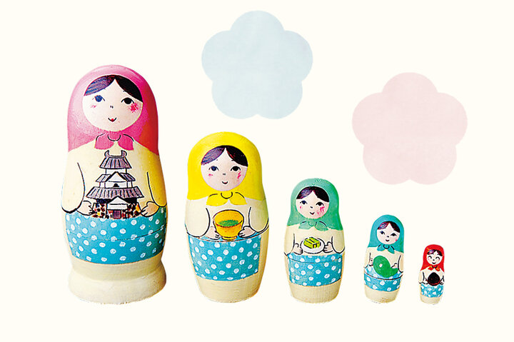 マツエーシカ(5人組) 5000円。松江の名物を手にしたマトリョーシカ