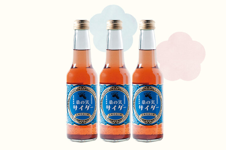 桑の実サイダー各230円。有機栽培の桑の実の果汁で作ったサイダー