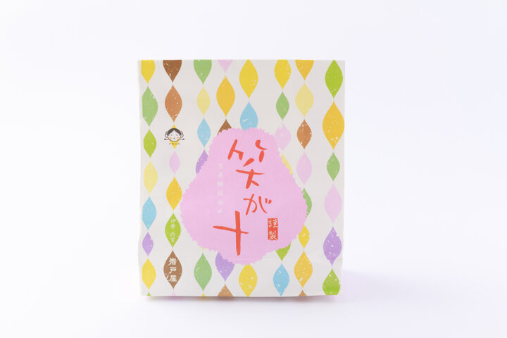 「笑が十」を手がける「岩戸屋」は、伊勢神宮内宮前のおはらい町に建つおみやげ店・お食事処。明治43年の創業以来、100年以上にわたって手作りの和菓子や食事で参拝客をもてなしてきました。 岩戸屋で創業以来親しまれているのが、生姜の絞り汁と砂糖を合わせて煮込み、型に流し込んで作ったお菓子、生姜糖です。伊勢神宮のお札(剣祓)を象った生姜糖は、生姜やニッキ、抹茶などが定番の味。この伊勢銘菓をもっと幅広い世代に味わってほしいという思いで作られたのが、生姜糖の詰め合わせ「笑が十」です。