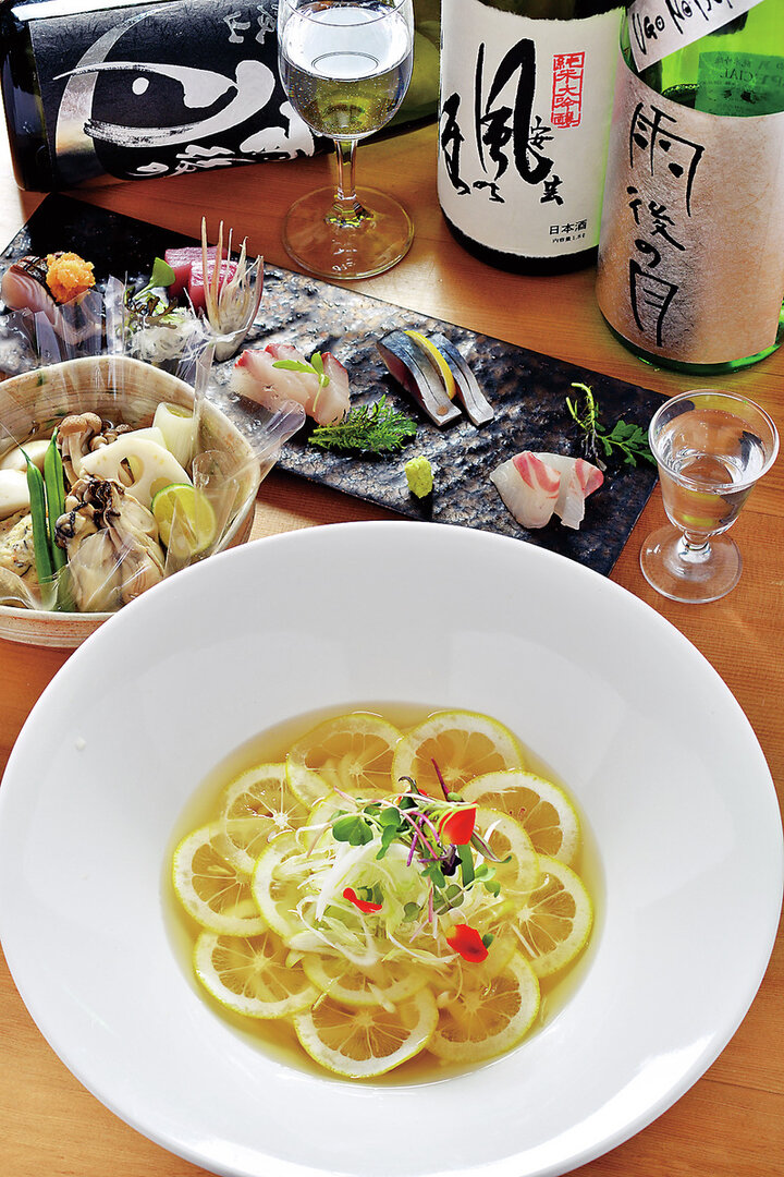 広島の郷土料理の要素を取り入れた会席料理を提供する店。三次市で昔から親しまれているワニ(サメ)や、倉橋産の生シラス、地物のアナゴなど、四季を通して広島食材の魅力を伝えています。コースや一品料理のほか、地酒も豊富です。和モダンな空間で心ゆくまでどうぞ。