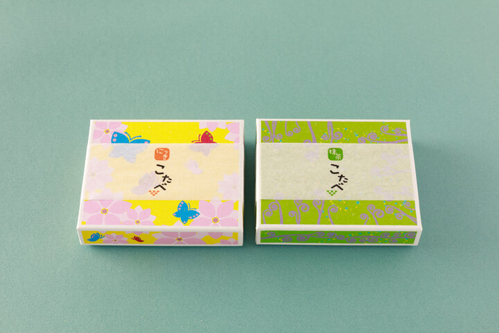 春限定のパッケージは、にっきが「蝶々」、抹茶が「わらび」をモチーフにしている