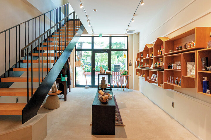 公園の前に建つ生活雑貨店。体思いの食材や機能美を備えたキッチンツール、着心地のよいウエアや空間を彩るインテリアなど、オーナー夫妻が背景に宿るストーリーまで見極めセレクトした逸品が並びます。2階のギャラリーではイベントも随時開催されています。