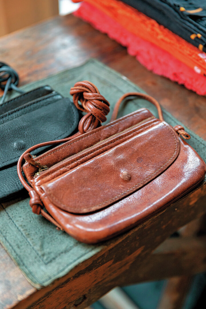 革財布ポーチ各6800円。財布はもちろん、ポシェットとしても使えるオリジナルアイテム