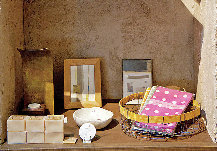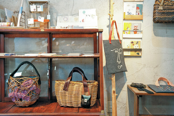 オーナーがつくるオリジナルのかごバッグなどの雑貨や、パウンドケーキ1100円~やスノーボール165円など、旬を取り入れた焼き菓子が並びます。センスよくディスプレイされた店内は、まるで絵本のよう。