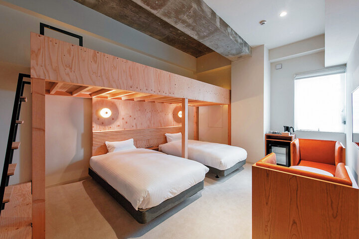 好立地な広島市街に建つ宿。屋内プールを改装したラウンジをはじめ、瀬戸内のアイテムがそろうポップアップショップも展開。客室はダブルやツイン、6名まで利用できる部屋など多彩にそろっています。広島各地のバリスタが日替わりで登場するドリンクスタンドも好評です。