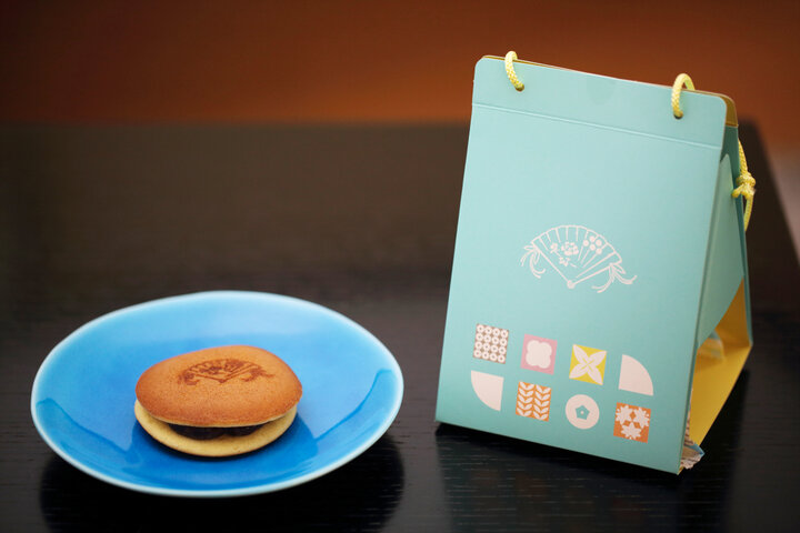 パッケージともに、新しくリニューアルしたばかりなのがどら焼き。粒あん・こしあん・黒糖の全3種で、「京の華扇」と名づけられました。黒糖はあんではなく、生地に練り込まれているのが特徴です。テトラ型のパッケージは、洗練された青色が印象的。これは、戦後に日本画の池田遥邨と末富の2代目主人が色味にこだわって作った歴史ある包装紙をモチーフにしたもので、その色の美しさから時代を越えて「末富ブルー」と呼ばれ愛されてきました。