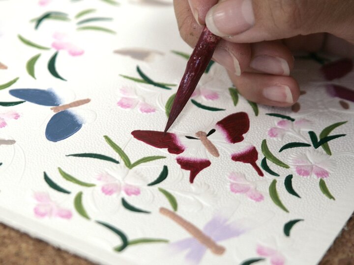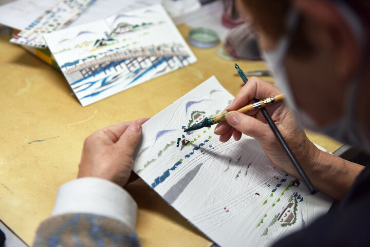 彩色はすべて手描き。同じ柄でも少しずつ異なる1点モノができ上がる