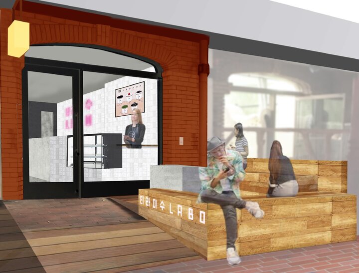 「ティラミスラボ」は、日本では珍しい韓国スタイルのカップティラミス専門店。ティラミスは日本で1990年代に流行したスイーツですが、昨今、韓国でフルーツなどをトッピングしたカップティラミスがフォトジェニックなスイーツとして人気を集めています。 店内は白を基調とし、韓国をイメージしたネオン管でつくられたパステルカラーのロゴを店舗中心にレイアウト。フォトスポットとしてカップティラミスやドリンクと一緒に写真撮影が楽しめます。開放的なテラス席は屋根付きなので雨の日も安心して訪れることが可能です。