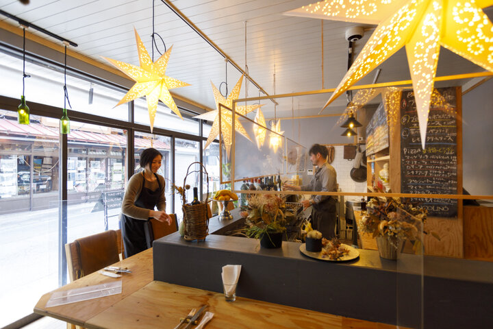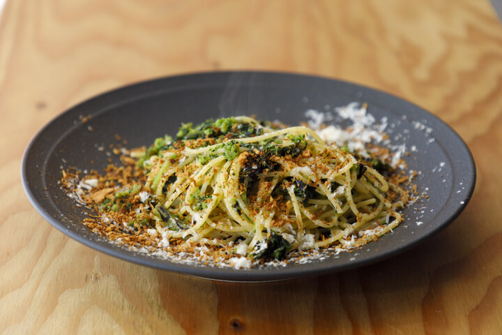 店内では、新鮮な旬の野菜をたっぷり使った「ブロッコリーと菜の花のオイルソースパスタ」や、もちもち食感の「ふきのとうとジャガイモのマルゲリータ」(共に1500円前後)など、創作イタリアンをメインとしたお料理の数々をいただけます。