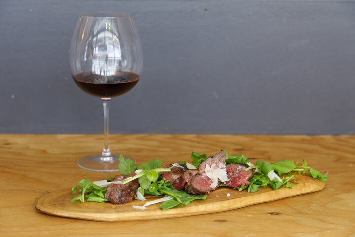 ワインも豊富に取り揃えています。店内では、北から南まで各州の個性が楽しめるイタリアの地ブドウにこだわったイタリア産ワインを常時20~30種類ラインナップ。グリルした牛ハラミにシチリアの岩塩と羊のチーズ、ペコリーノをかけていただく「牛ハラミのタリアータ」(1980円)など、ワインにぴったりの一品料理もさっとその場で作っていただけます。