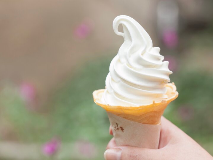 カフェで1番人気のソフトクリーム450円。濃厚な味わいに驚いて