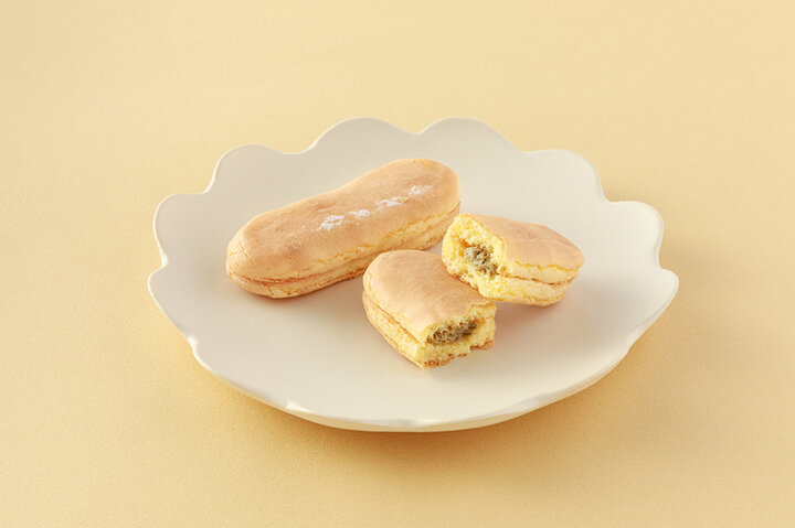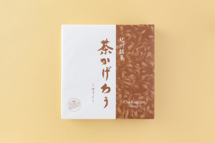 柔らかくふっくら焼き上げた生地の中に、やさしい甘さのクリームが特徴の和歌山を代表する銘菓「かげろう」。生地はふわっとして、口の中に入れるとすっと溶けていくようです。この食べた時の軽い触感が浜辺を漂うかげろうのように、儚いイメージというところから名付けられました。 今回ご紹介する「茶かげろう」は、2018年に新たに誕生したほうじ茶味の「かげろう」です。和歌山では古くからお水ではなく、番茶やほうじ茶で炊いたお粥「茶粥」が家庭の味として親しまれてきました。その茶粥で使われているほうじ茶を使った新しい「茶かげろう」は、香り豊かなほうじ茶とほどよい甘さがあとをひく美味しさです。