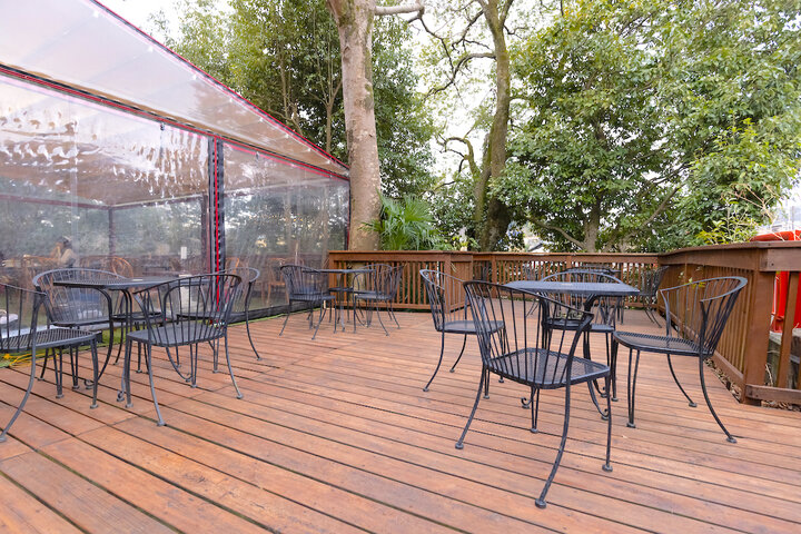 天気がいい日は高麗川の清流を見下ろすテラス席がおすすめです。大きな木々の間から木漏れ日が降りそそぐリバーサイドのオープンテラスは、リラックスした雰囲気。川のせせらぎや野鳥のさえずりに耳を傾ければ、日頃の疲れも飛んでいく癒しの時間を過ごせます。