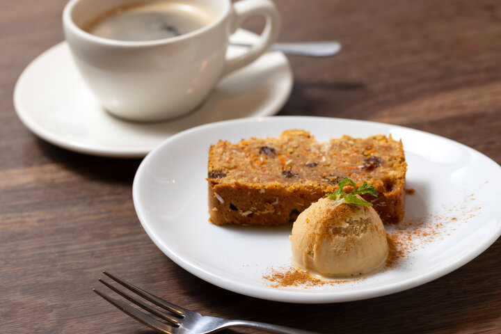 阿里山Cafeでは、ヴィーガンアイスクリームを添えたホットアップルパイやベイクドバナナチーズケーキなど、手作りのナチュラルスイーツも豊富です。 名物は、オーナーのオリジナルレシピで作られるアメリカンスイーツ「ジャックさんのにんじんケーキ」。どっしりと食べ応えのあるキャロットケーキは甘さ控えめで、スパイスをきかせた味が後を引きます。砂糖や乳製品不使用なので、罪悪感なく食べられるのもうれしいですね。