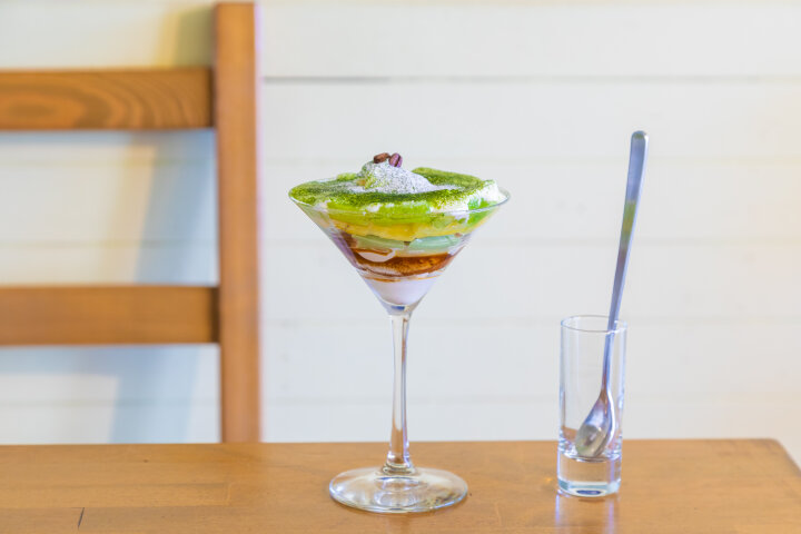 スイーツメニューだけでなく食事メニューも充実。ランチは日替わりのプレートランチ(750円)、ロコモコプレート(900円)、サラダボウルランチ(950円)など5種あり、夜は旬の食材を使った一品メニューを用意しています。 特におすすめなのが季節のパスタ。5月からスタートした「明石産タコとフルーツトマトのペペロンチーノ」はブリッとした歯ごたえで旨みが強いタコと甘いフルーツトマトの相性が抜群。サラダ用のバジルがトッピングされているので、全体を混ぜながら味わってください。