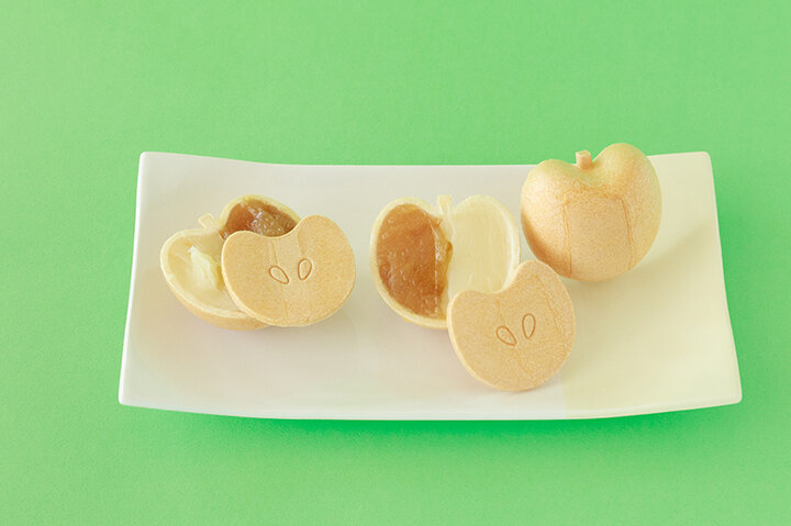 りんごを半分に切ったようなモナカは見た目も楽しい