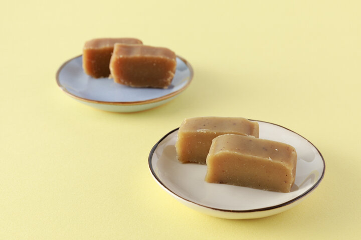 四万十産の栗と砂糖のみを使う「ジグリキントン」と、国産の栗と砂糖に四万十川流域で作られる天日塩を加えた「塩キントン」。ともに気取らない見た目で、塩キントンはほんのり茶色く色づいています。まずは「ジグリキントン」から。栗の実をそのまま食べたと思うほど、栗の風味を濃厚に感じます。最小限の材料で作ることで、栗の味わいが最大限に引き立つそう。「塩キントン」も同様に濃厚で、国産和栗の甘みを少しの塩がより引き立ててくれています。川にも山にも恵みがいっぱいの四万十川、いつまでも守り続けたい日本の原風景を思い浮かべながら味わってくださいね。