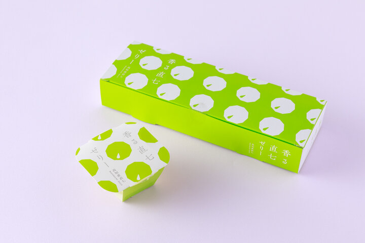 気候が温暖な四国は柑橘類の宝庫。柚子、すだち、みかんが特に有名ですが、限られた地域だけで栽培される希少な柑橘類がいくつかあります。高知県西部の幡多地区や宿毛市が産地の「直七」もそのひとつ。正式には「田熊すだち」といい、穏やかな酸味とたっぷりの果汁が特徴です。その直七の果実のおいしさをゼリーにぎゅっと閉じ込めたのが「香る直七ゼリー」。高知銘菓を作る和洋菓子店「浜幸」の人気の逸品です。4~9月の販売で、透き通ったイエローグリーンのゼリーは見た目にも涼しげ。まずは冷蔵庫でよく冷やしてからいただきます。