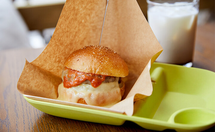 ハンバーガーには、目玉焼きやベーコン、はちみつ、ハラペーニョなどのトッピングも可能。オーダーメイド感覚でアレンジを楽しめるのもご常連のお客さまを飽きさせない工夫です。