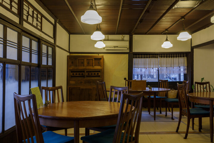 バス停・高畑町から歩いて12分ほど。自然豊かな住宅地の中に「糀料理とビオスチームのお店 えん」があります。古民家を改装したお店は靴を脱いで上がるようになっており、畳の空間に落ち着きます。
