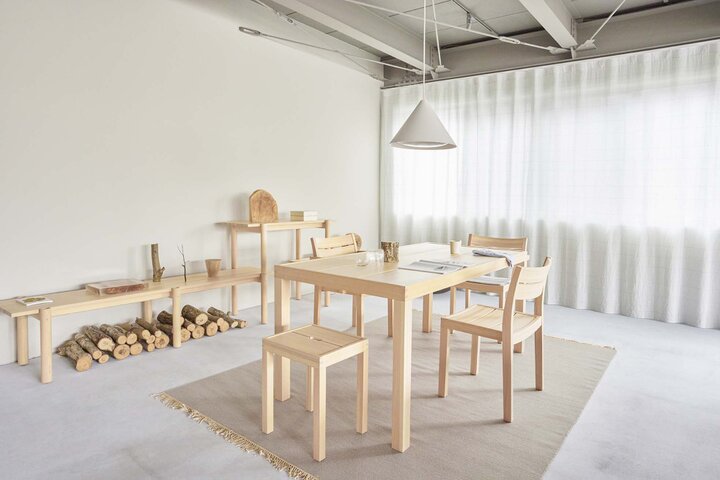 入って正面にあるのは、デンマークのデザインスタジオ「ノーム・アーキテクツ」がディレクションを行う「Karimoku Case Study」のコレクション。 近年では、日本×北欧のインテリアデザインを「ジャパンディ」と呼び、木の温もりが感じられるミニマルなシルエットが人気だそう。