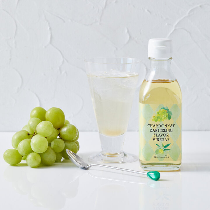 「シャルドネダージリンフレーバービネガー」は、白ワインビネガーにシャルドネの果汁をブレンド。甘くすっきりとしたシャルドネの香りと、ダージリンの香りを楽しめるビネガーです。