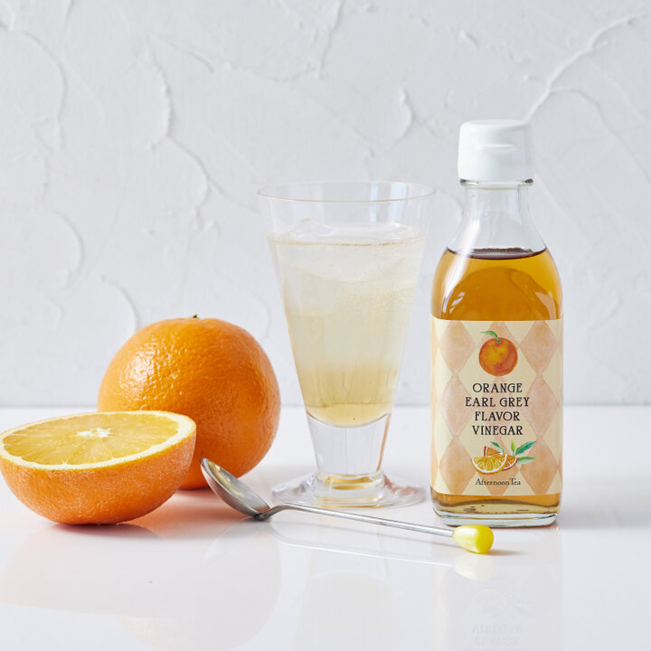 「オレンジアールグレイフレーバービネガー」は、ブラッドオレンジビネガーに、甘いオレンジの香りと、さわやかなアールグレイの香りを楽しめるビネガーです。 以下のフルーツビネガーのおいしい楽しみ方も、ぜひ参考にしてみてくださいね。 ①ビネガー1:炭酸水4 でソーダ割りに。お好みのフルーツやハーブを加えても。 ②ビネガー1:オリーブオイル3 でドレッシングに。 ③千切りにしたお好きな野菜とビネガーを混ぜてマリネに。