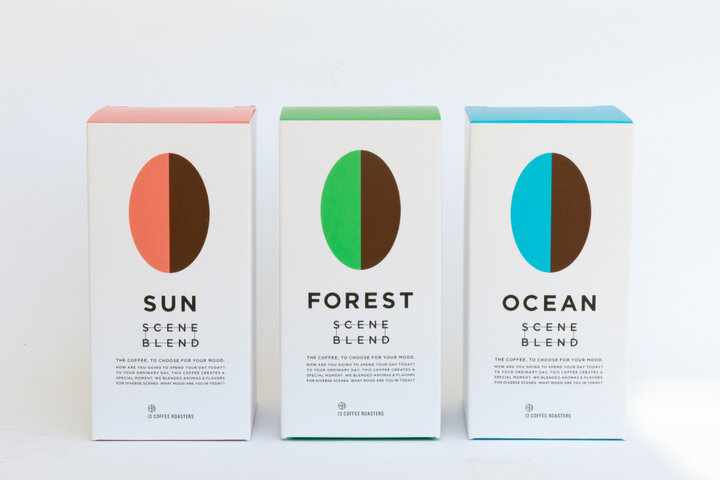 店内で自家焙煎したコーヒー豆は購入も可能。気分によって味わいを選べるシーンブレンドがおすすめです。オレンジのようにフルーティな「SUN」や、やさしい後味の「FOREST」キリっとした苦みが特徴の「OCEAN」など、全9種類で各1200円。それぞれの情景を思い浮かべながら、気になるコーヒーを選んでみて。