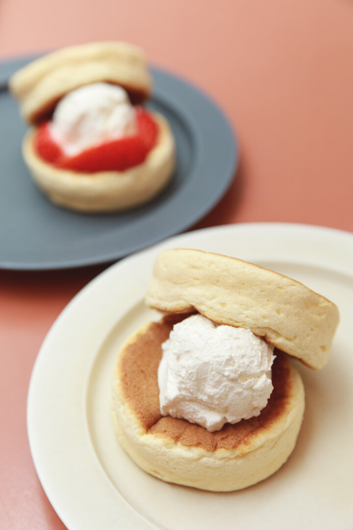 「GRASSA」のお隣に建つ和菓子店「和む菓子 なか又」。こちらも前橋の再生プロジェクトに賛同したデザイン事務所が手掛けています。特製のどらやき生地にたっぷりのメレンゲを加え、ふんわりなめらかに仕上げた「ふわふわ わぬき」が人気。定番のミルククリームやあんクリームのほか、旬のフルーツをはさんだ季節限定の味もおすすめです。この「ふわふわ わぬき」を求めて開店前から行列ができ、午後の早い時間には売り切れてしまうことも多いとか。気になる人は早めに出かけてみてくださいね。